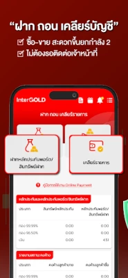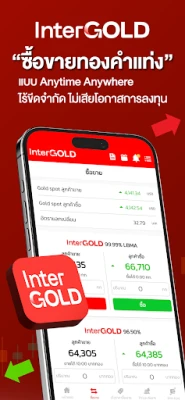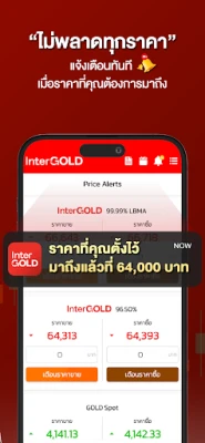 เปิดประสบการณ์ การซื้อขายทองคำรูปแบบใหม่จากอินเตอร์โกลด์ ไม่ต้องรอหน้าร้าน ไม่ต้องต่อคิว พร้อมระบบแจ้งเตือนราคา ไม่พลาดทุกการซื้อขาย ให้คุณซื้อขายได้ทุกที่ ทุกเวลา ด้วยฟังก์ชันหลักที่จะทำหน้าที่เป็นผู้ช่วยคุณตลอดการลงทุน