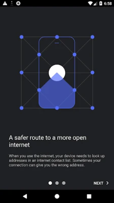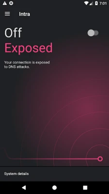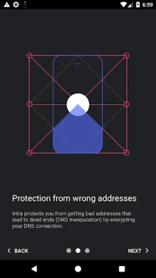 Intra protects you from DNS manipulation, a cyber attack used to block access to news sites, social media platforms and messaging apps. Intra utilizes Android's VpnService to create a secure tunnel that intercepts and encrypts your DNS queries, preventing manipulation by malicious actors. This also helps protect you against some phishing and malware attacks. Intra couldn’t be simpler to use — just leave it on and forget about it. Intra won’t slow down your internet connection and there’s no limit on data usage.