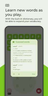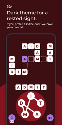 • 🧩 More than 4000 unique word puzzles of slowly increasing difficulty • 😌 No intrusive ads, no microtransactions; just fun without nonsense • ✈️ Playable without an internet connection • 🌙 Dark mode setting for a more rested sight • 🤓 Built-in dictionary to learn about the words you've discovered