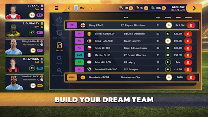 Take control of some of the world's biggest football clubs in Soccer Manager 2026, including Manchester City, Bayern Munich, Borussia Dortmund and Bayer Leverkusen. Build your dream team of real football superstars to help you achieve glory on the pitch. Sign the best players or spend time scouting for wonderkids - the transfer choices are yours.
